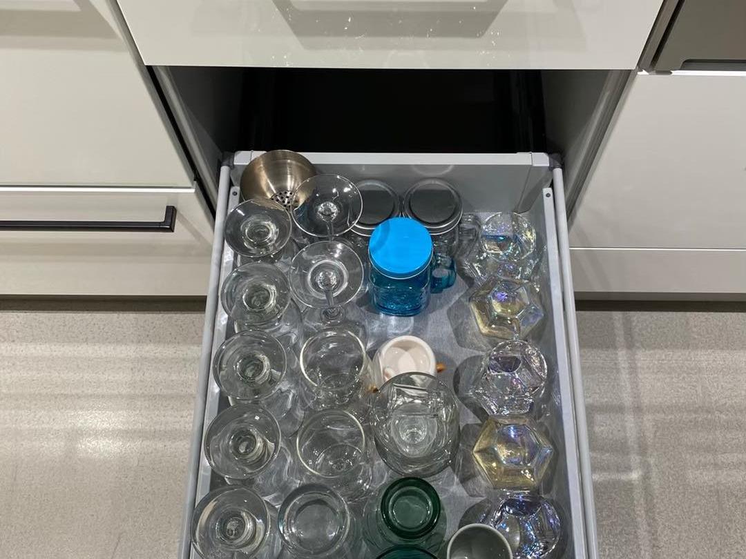 完整利用下廚台空間,比一般歐系廚具多出至少30%的收納量,讓喜愛收集漂亮碗盤以及鍋具的你,不用再擔心櫥櫃爆炸無處收納。此外櫃體抽屜櫃的設計也讓廚房用品更好拿取,在使用廚房以及收納上更有效率。