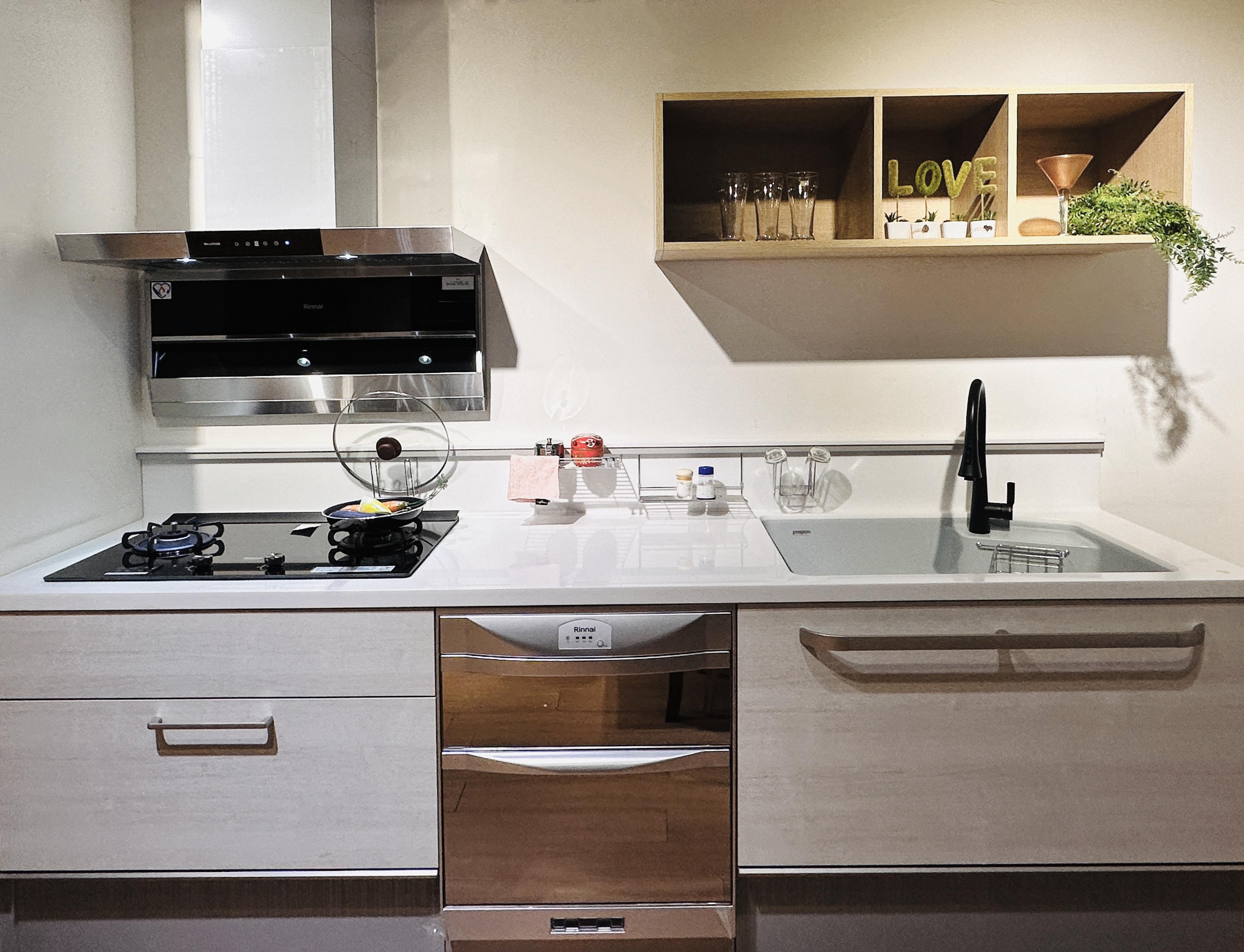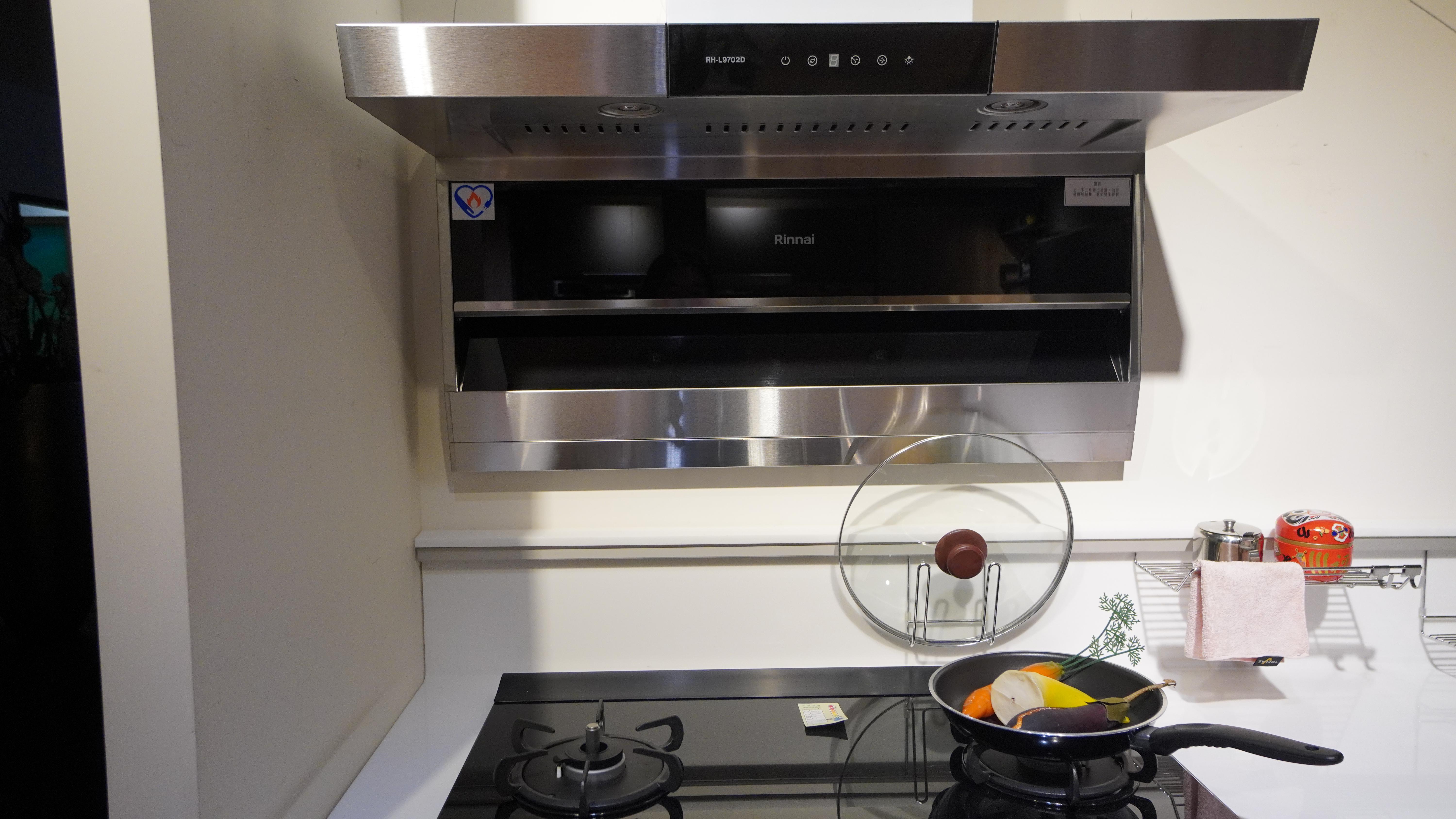 搭載 林內 RH-L9702D 頂側雙吸排油煙機,強勁吸力,輕鬆保持空氣清新。