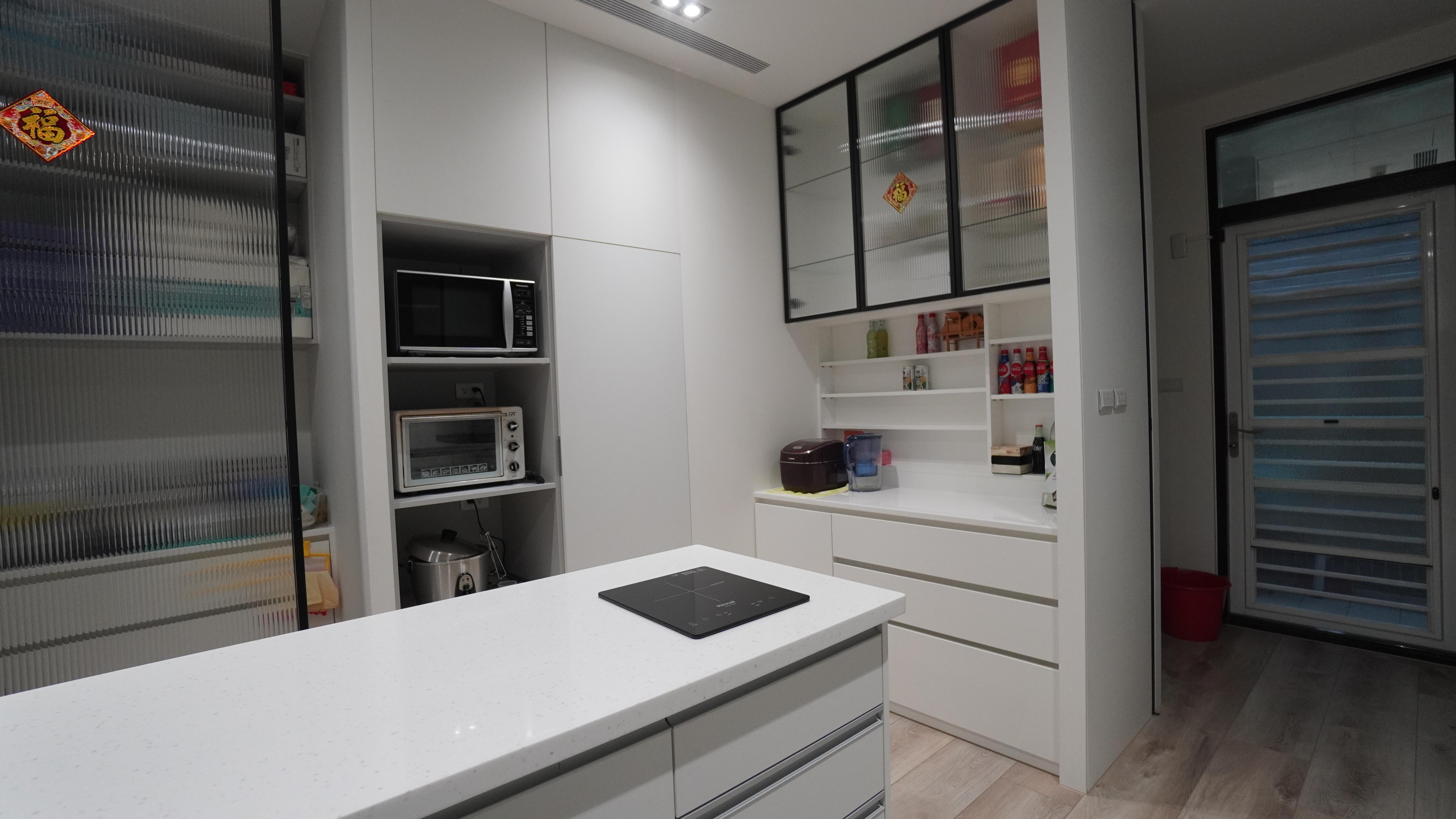 煮完飯的熱盤有地方暫放,買菜回來可以慢慢分類不慌亂,想做個輕食小料理也能直接在這裡完成,而且轉身就是家電與收納區,實現一步到位。